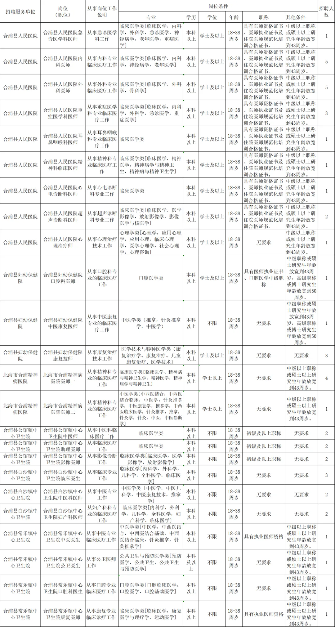 注:合浦县紧密型县域医疗卫生第一共同体参加2026年广西卫生健康“渝川英才汇”招才引智活动招聘公告