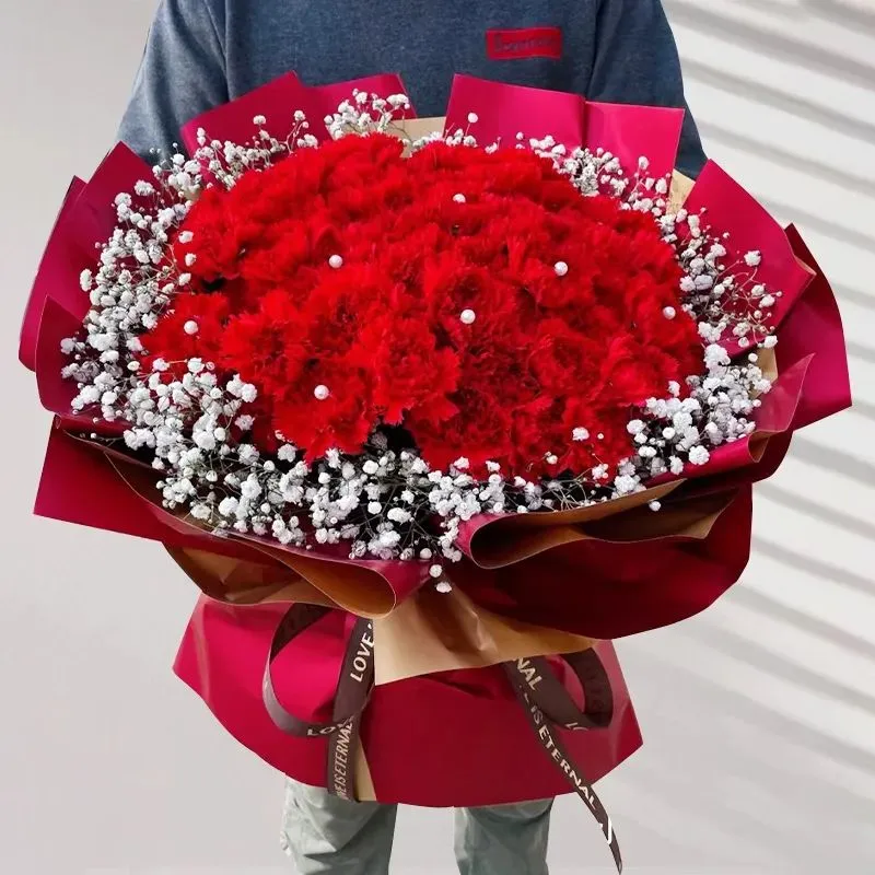 红色康乃馨+石竹梅(象征“永恒的爱”),适合母亲节;粉色康乃馨+勿忘我(象征“永恒的回忆”),适合感恩老师。
