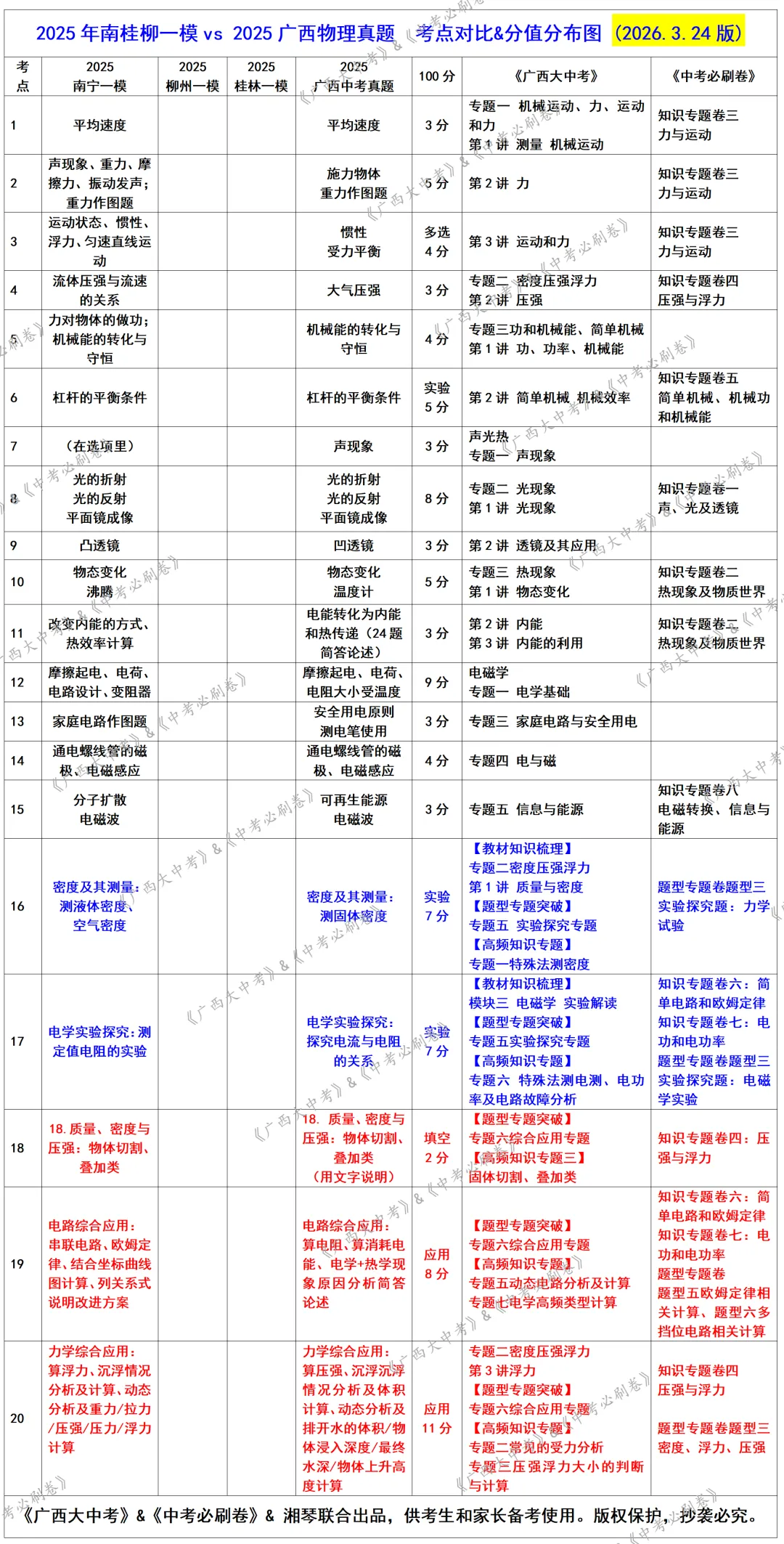 为什么是2025南桂柳一模与2025中考真题做比对,而不是23、24、25年历年真题联排分析?——因为26届广西中考物理是新课标+新教材,要先确定2025年南桂柳一模卷与2025中考真题卷有多少相似度,且着重分析市级的一模卷,再做2026年4月中旬南桂柳最新一模卷分析。
