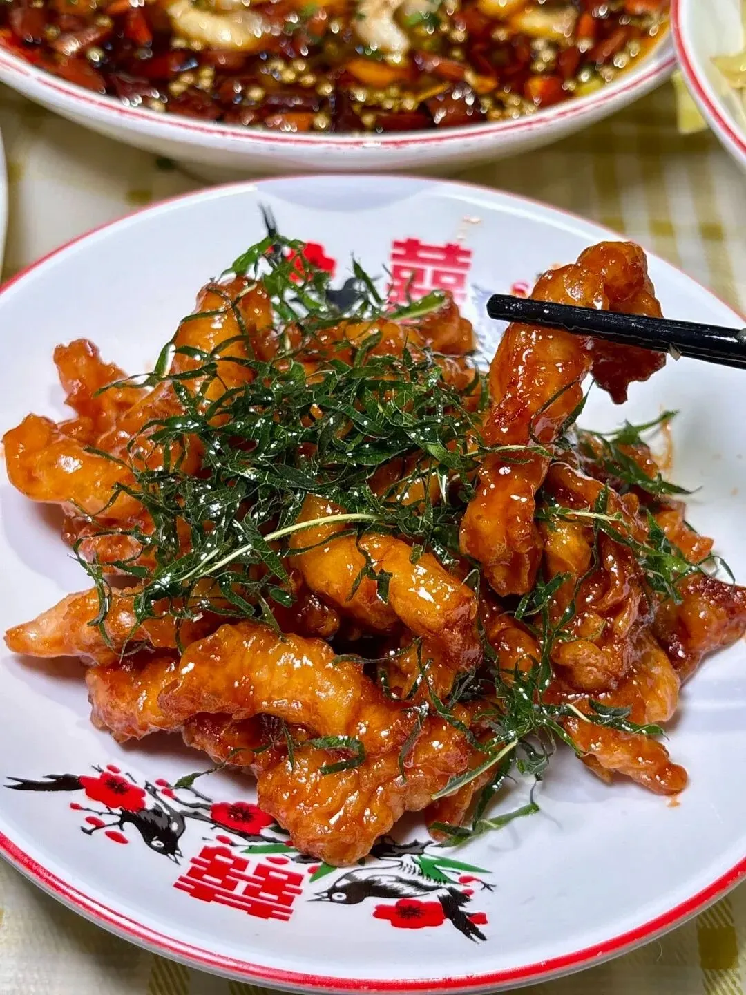 再配上一盘红油鲜亮、看着就让人疯狂咽口水的凉拌鲜肉,辣而不燥肉质嫩滑入味,桌上的每一道菜都是纯纯的下饭神器。