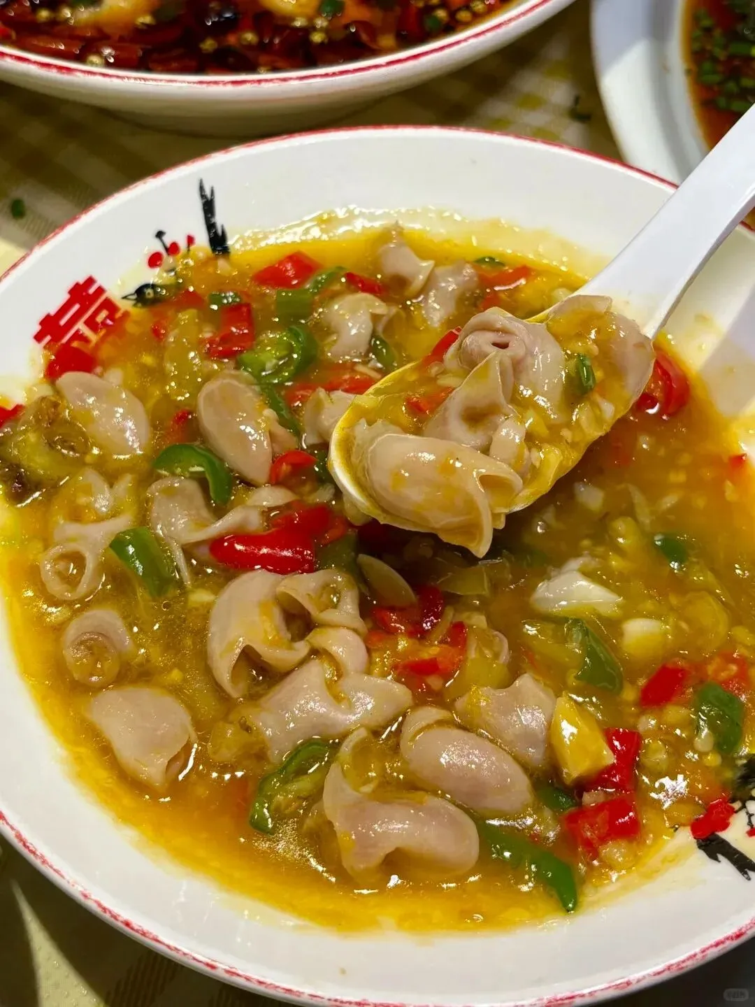 还有处理得非常干净的肥肠,软糯鲜香一点多余的异味都没有,金黄浓郁的汤汁用来浇在米饭上简直是一绝。