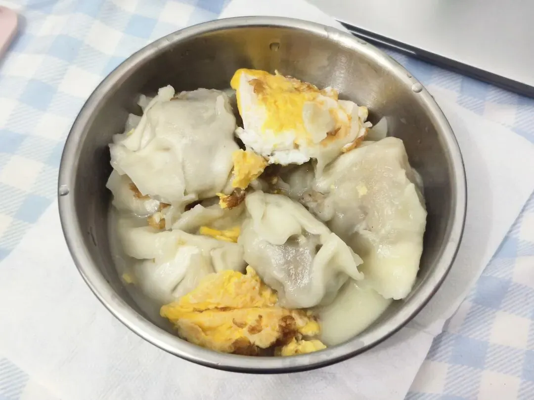 晚餐煮了几个速冻饺子吃,还加了一个煎蛋,看着没什么食欲,实际吃起来也不好吃。