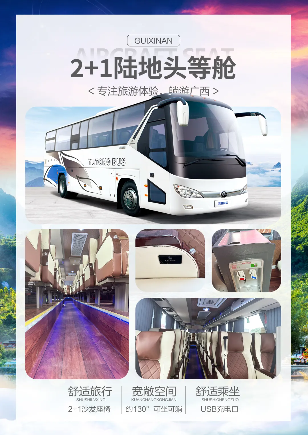 尊享2+1 陆地头等舱座椅,全程车载 USB 快充,舒适躺游边关之旅