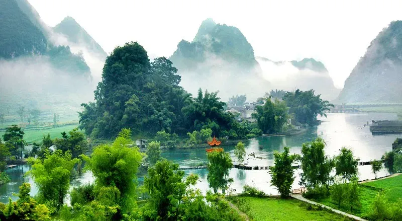 鹅泉—灵泉神韵(国家AAAA级景区)靖西著名的八景之一,已有七百多年的历史,中国西南三大名泉之一,鹅泉又名灵泉,现称鹅泉景区,为亚洲第一大跨国瀑布——德天瀑布的源头,位于靖西市城南6公里。鹅泉水四季不涸,水清如镜。周边翠峰如屏,田园似锦,景色如画,明嘉靖皇帝得知此地山川灵秀,赐名“灵泉晚照”。鹅泉自古流传杨媪养神鹅的动人传说,并有鹅泉祭日“鹅泉跃鲤三层浪”之说,我国著名画家关山月先生游览鹅泉时曾挥毫题词:“鹅池跃鲤”。,更使鹅泉披上了神秘的色彩,自古以来留下许多美丽的传说,鹅泉青山环绕、田园如画、翠竹婆娑、水清如镜、鱼虾如梭,在这里可以欣赏到一幅幅画卷式的壮乡田园美景,体会山情野趣的韵味。