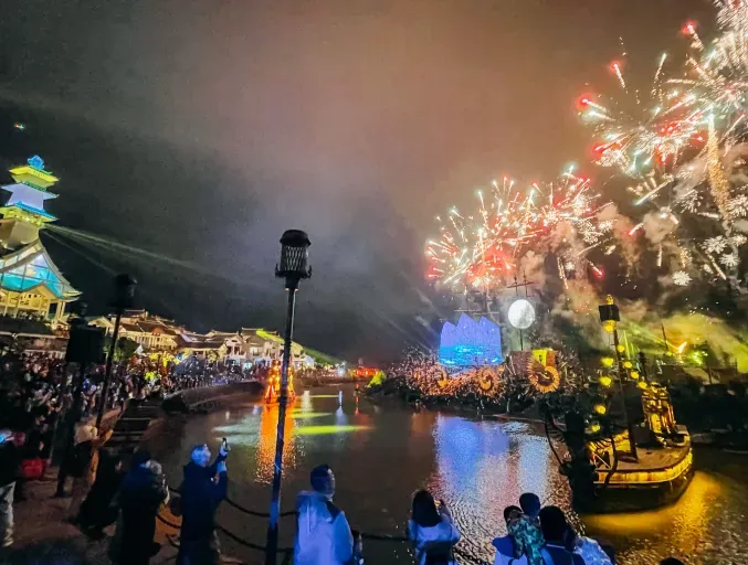 当夜幕降临,海丝首港才真正迎来最璀璨的 “高光时刻”:万千灯光沿着海岸线次第亮起,暖黄与亮白的光影将古港建筑、码头廊桥、沙岛轮廓勾勒得如梦似幻,连海面都倒映着粼粼灯影,宛如星河落地;随着音乐响起,绚烂的烟花准时绽放在海港上空,金色花火划破夜空,与岸边灯火、海面波光交相辉映,瞬间点燃全场的欢乐氛围,将夜晚的热闹推向顶峰。