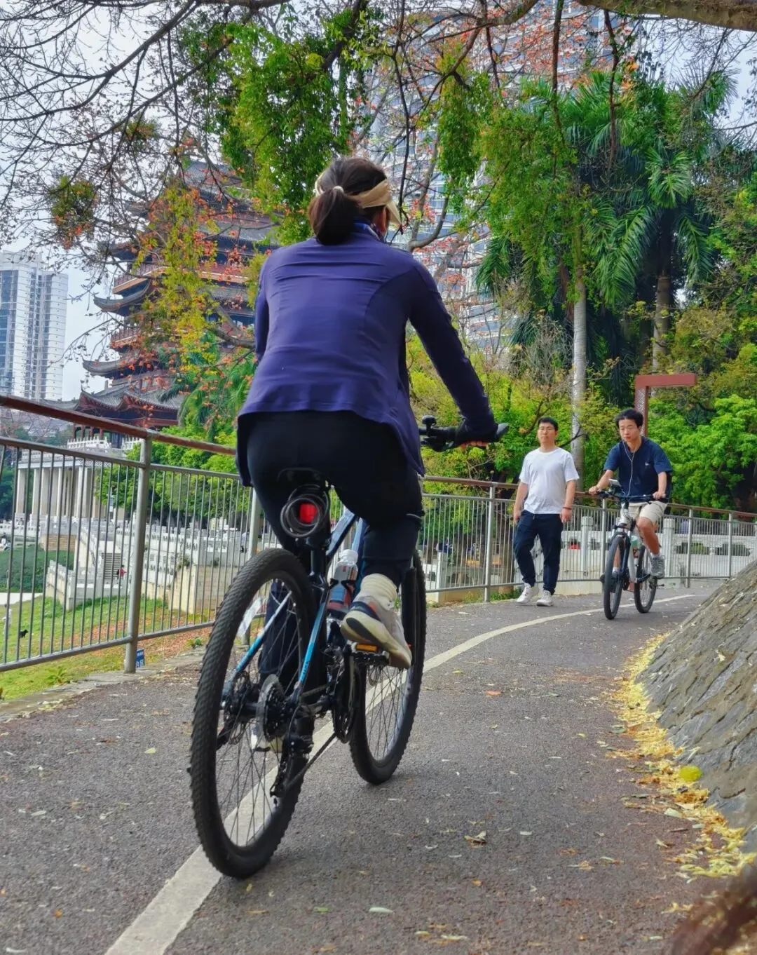身边不时有骑行者穿梭而过,也有携手并肩的情侣、白发相伴的夫妻,以及带着孩子漫步的家庭——欢声笑语,其乐融融……