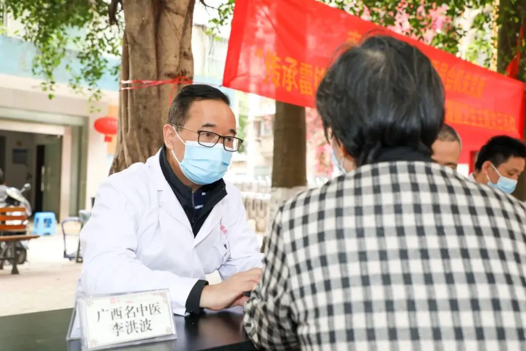 中医药具有“简、便、验、廉”的独特优势。行医多年,李洪波积累了丰富经验,他认为中医的根基在基层,普及与推广中医药服务能让更多百姓获益,对提升人民群众的健康水平具有重要意义。因此,他带领团队下沉基层,积极推动广西“名中医八桂行”“名中医基层行”项目实施,以培训、带教、义诊等形式,对口指导基层医疗机构相关专科建设,传播名中医专家的学术思想、技术专长,提升基层中医药服务能力。
