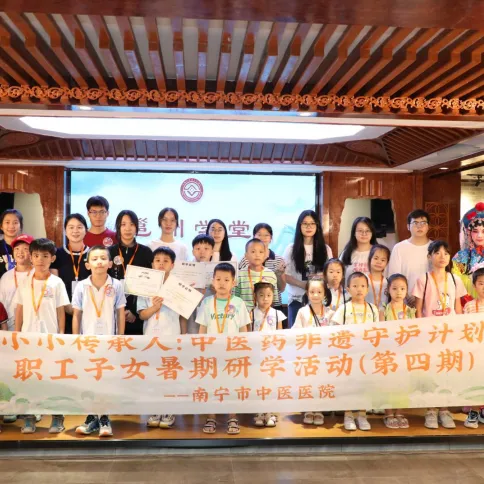 7月至8月,南宁市中医医院开展“小小传承人:中医药非遗守护计划”暑期研学活动,吸引165名职工子女参与。活动设置5期主题研学,包含3期全天班和2期半天班,通过沉浸式体验让孩子们感受中医药文化魅力。孩子们通过走进院史馆、百草园,学习辨识草药、练习八段锦,并深入急诊科、手术室、针灸推拿科探秘医学实践。在广西药用植物园,他们亲手制作中药眼罩、植物团扇和环保洗手液,体验中医药的实用价值。在邕州剧院参观非遗文化,孩子们学习邕剧表演、脸谱绘画和传统剪纸,近距离感受戏曲艺术。医院表示,希望孩子们成为文化传承的“小火种”,助力中医药文化薪火相传。