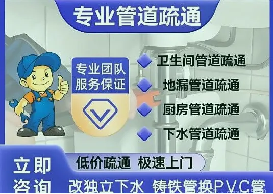 管道疏通:使用家用疏通机、大型疏通机等设备,专业疏通各类疑难下水道、卫生间、地漏、浴缸、菜池、阴沟、马桶、蹲坑等。