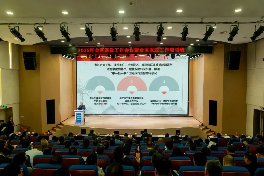 全区医政工作会议暨培训班在柳州召开。南宁市中医医院院长作为代表,分享了医院在构建老年病中医防治三级服务体系中的创新实践。他指出,医院以“市—县—乡”三级联动模式,打造覆盖预防、治疗、康复的全周期中医药服务网络。医院指导了6家县级医院完成标准化老年病科建设,推广优势病种诊疗方案及中医适宜技术,培养基层人才。在基层医疗机构建成同质化的老年综合评估室,部署老年健康档案管理系统,实现数据互联互通。未来,医院将继续整合优势资源,推动和优化南宁市老年病中医防治三级服务体系建设,为应对老龄化、提升老年人健康获得感提供“南宁经验”。