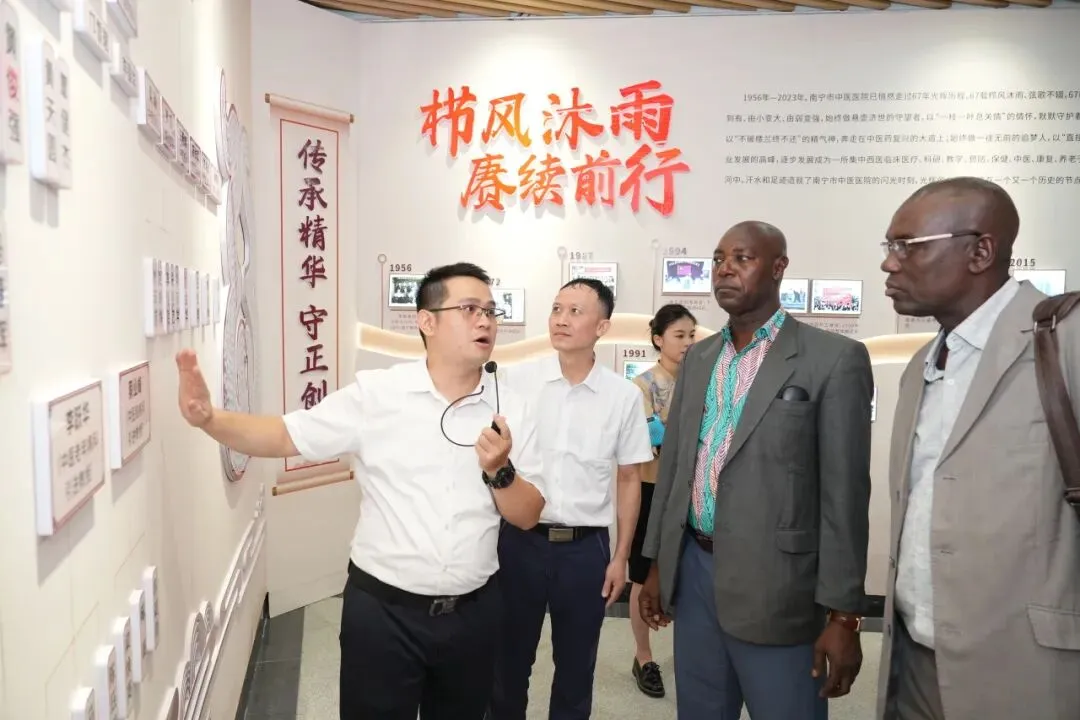 8月7日下午,尼日尔综合示范医院院长达乌·玛玛尼,大校、医疗总监马拉姆·阿卜杜·萨利苏到南宁市中医医院进行交流访问。医院党委书记倪钰荣,党委副书记、院长等领导班子成员以及相关科室负责人、援非代表参与座谈并陪同参观。