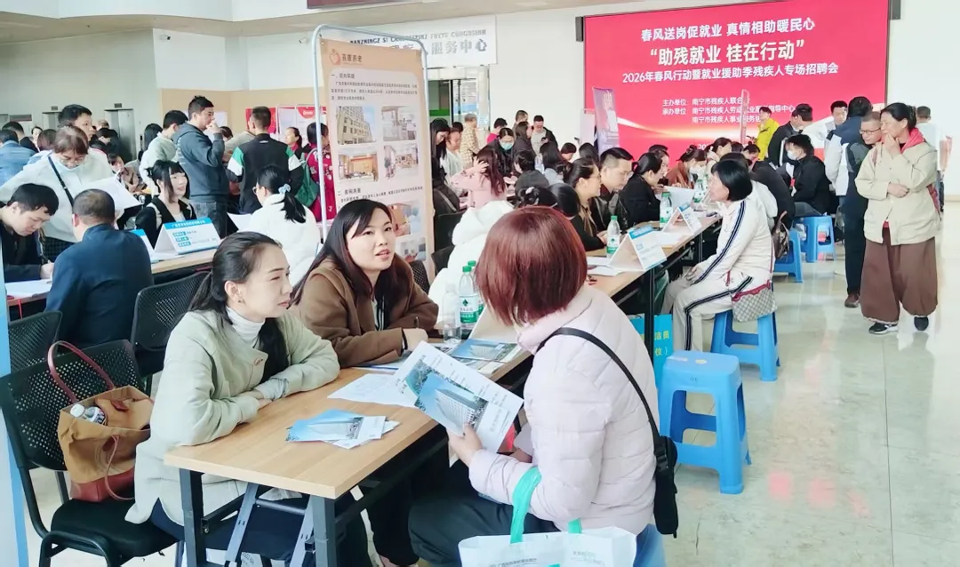 2026年1-3月,南宁市紧扣“春风送岗促就业 真情相助暖民心”主题,扎实开展春风行动暨就业援助季系列活动。通过强化协同、精准摸排、搭建平台等举措,有力促进残疾人更充分更高质量就业。活动期间,全市共举办残疾人专场招聘活动37场次,其中线上5场提供岗位50个,线下32场提供岗位468个,签订或达成就业意向145人;联系服务残疾失业人员524人次,成功促进就业30人。