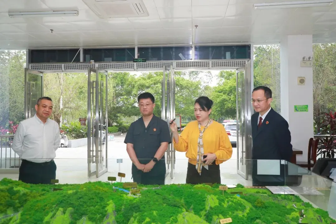 在工作交流环节,大明山管理局党组书记、局长黄春妹,大明山管理局三级调研员滕达初,武鸣区人民法院党组书记、院长郑磊,武鸣区人民检察院党组书记、检察长张仁一行,前往生态环保旅游巡回法庭挂牌办公点实地察看,围绕巡回法庭职能发挥、生态保护协同、普法宣传联动等重点工作深入交流研讨。黄春妹局长对武鸣区法检两院长期以来给予大明山保护区生态保护工作的大力支持表示衷心感谢,充分肯定了巡回法庭在震慑破坏生态环境行为、护航保护区生态安全等方面发挥的重要作用,并就强化联合执法、拓宽普法覆盖面、筑牢生态屏障提出工作期望。各方一致认为,生态环保旅游巡回法庭的设立,是践行“绿水青山就是金山银山”理念的具体实践,各方将进一步深化多部门联动,健全协同机制,以法治赋能区域生态保护。