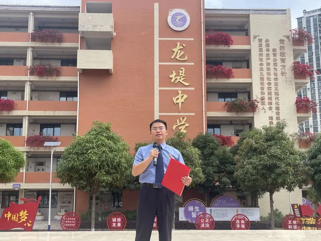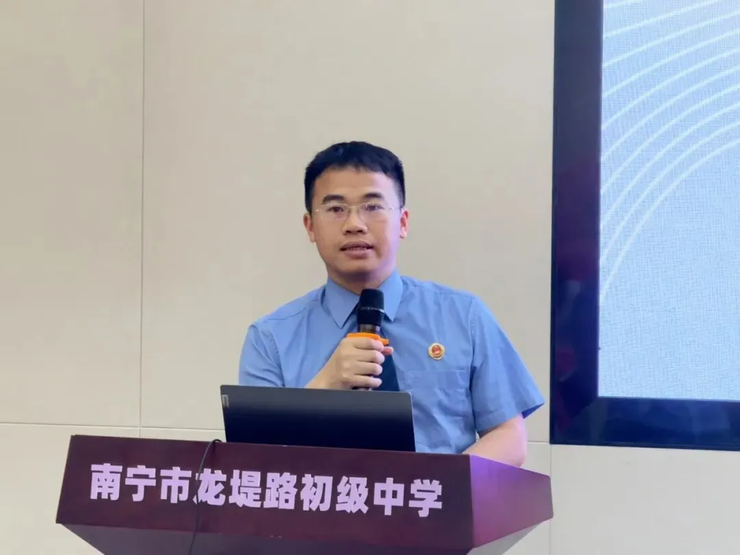 为进一步增强全体师生的安全意识和法治观念,筑牢校园安全防线,3月24日下午,南宁市龙堤路初级中学组织开展2026年春季学期安全第一课系列教育活动。活动特邀良庆区检察院第一检察部检察官、学校法治副校长农运颇到校授课,全体师生分场次参与学习。