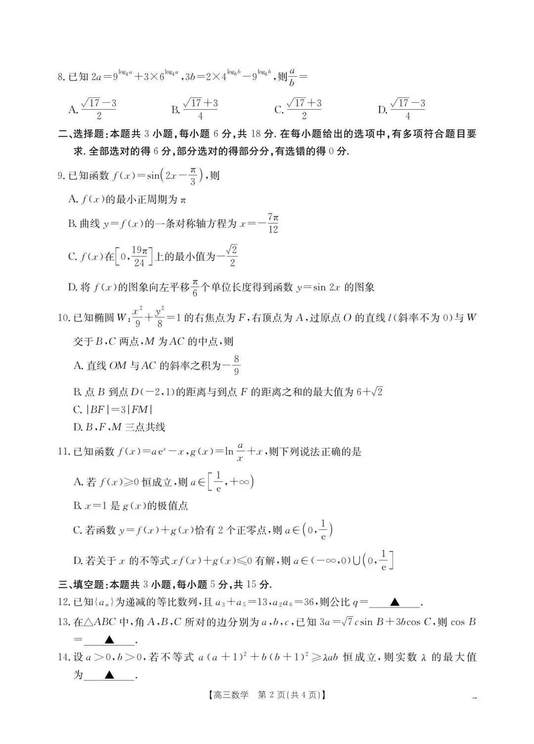 >南宁市高三毕业班第二次适应性测试数学试题 2026高三二模