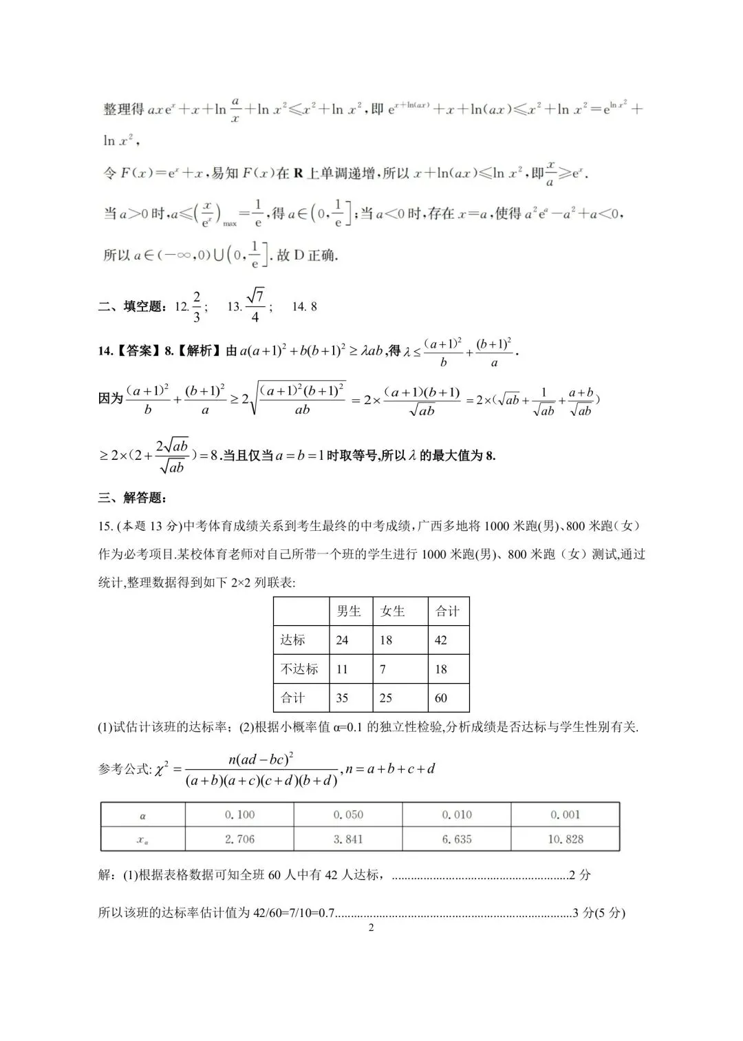 南宁市高三毕业班第二次适应性测试数学试题 2026高三二模