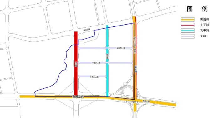 方案里的南北快速路,由原本的发展大道往南接秀厢大道-行建立交,调整为从发展大道转丰达路往南接秀厢大道-鲁班立交。