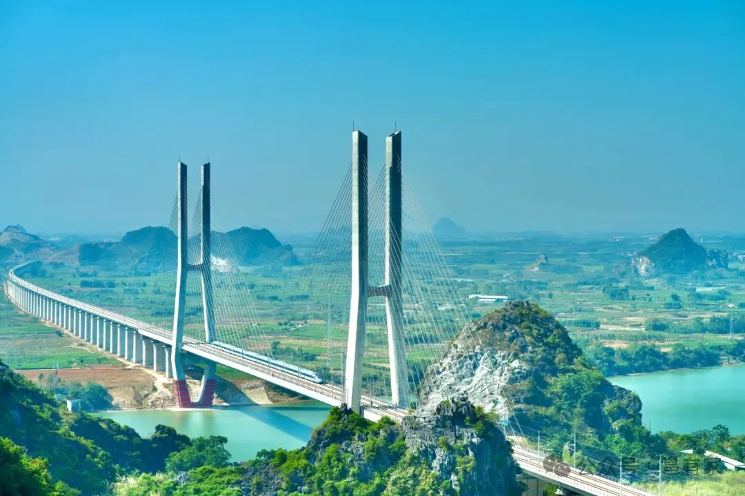 ▲南珠高铁南玉段百合郁江特大桥(图源:广西交通)