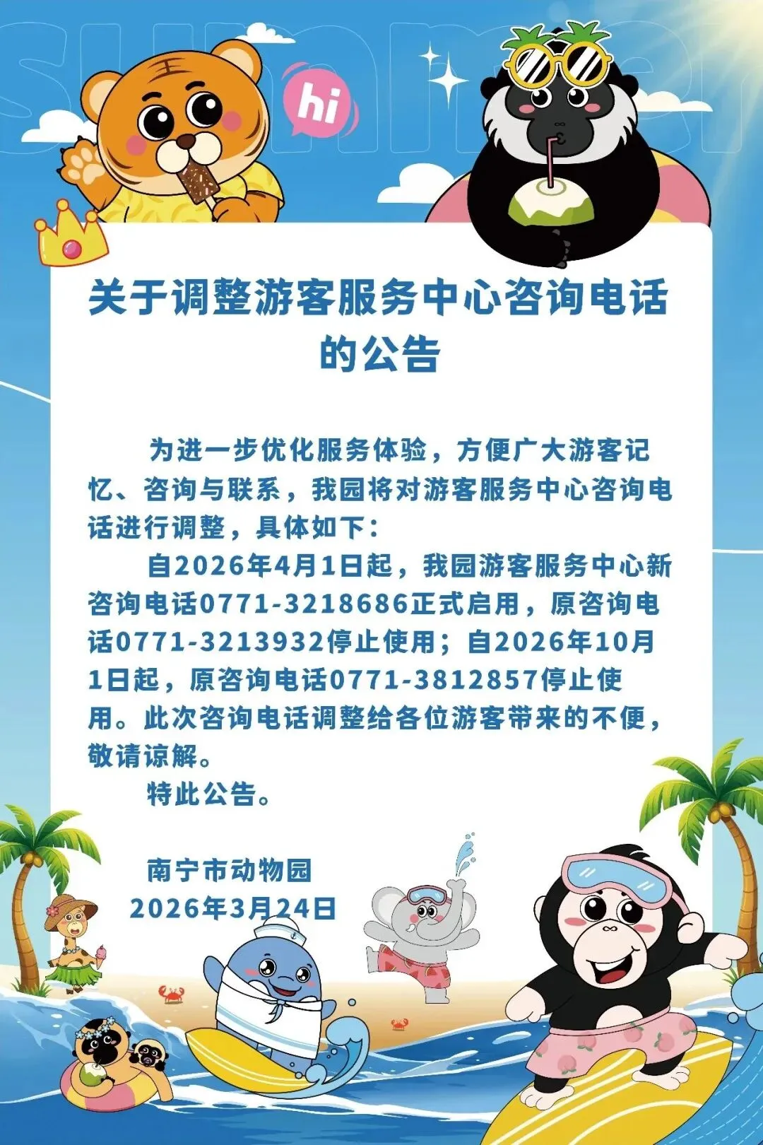 注意啦!南宁市动物园咨询电话已更新,请广大游客知悉
