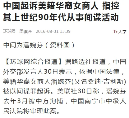 前面我跟大家讲什么间谍啊,意识形态渗透之类的,很多人都说我上纲上线。认知这东西,如果只随着“我觉得”而转移,被带偏肯定是迟早的事情。事实上,在隐蔽战线上,广西也好,全国也罢,绝大多数案件都处于尘封状态。而影视剧中,往往又充满科幻,感觉不接地气。事实上,真正的间谍什么样,广西近些年还真抓到过一个,其影响之大,堪称国际知名,甚至奥巴马在G20峰会等重大场合都多次对我国施压。然并卵,最终,南宁中级人民法院做出正式判决,并在服刑结束后驱逐出境。然而,仔细看这位间谍的行为却发现,其实这个人并不是什么上天入地的超能人士,在大多数人眼里,她不过就是个嘴巴很碎的热心大妈!然而谁也想不到她竟是美国潜伏在中国,号称拥有2万名下线的超级间谍!潘婉芬生于1960年,是一位越南华裔,上世纪70年代末随全家移民美国。越南战争结束以后,黎笋集团背信弃义,掀起了反华浪潮。华人大量被迫害、屠杀。大量越南华人被没收全部财产后赶上公海,然后用机枪扫射屠杀。香港电影《投奔怒海》讲的就是这一段华人的屈辱历史。为了挽救这些受迫害的越南华人,海内外华人华侨全力营救,才使这些越南华人能够安身立命。时至今日,广西大量的华侨农场中,就有大量的越南华人是那个时代逃回祖国大家庭的。按理说,一路上感受国破家亡之路,都不说爱国了,起码爱我们中华民族总是应该的吧。全家逃难到美国后,由于潘婉芬的父亲经商有方,全家人生活很是不错,潘婉芬据说曾就读于哈佛法学院,可以算是“华人之光”。90年代,她已经商有成,开始往内地投资,曾任休斯顿-深圳姐妹城市协会会长,主要往返休斯顿、深圳、南宁,帮助招商引资,也算是帮了很大的忙。有见过她的人说,这个大妈看起来非常随和,很爱帮人,尤其是赴美签证、推荐信,帮人要国外的留学名额这方面的问题,基本上打个招呼就能办成,也很愿意帮人牵线搭桥走关系。所以,很多人非常感谢她。然而,一切的一切,在2015年3月19日迎来了惊天转折!2015年3月19日,潘婉芬随休斯顿商务代表团来到中国搞友好交流。可是,在珠海与澳门交界的边境出境,随行的人就在出境时不见了潘婉芬。他随后收到潘婉芬的手机短信,意思是她不能一同前行。之后代表团成员回到美国见到潘婉芬的丈夫杰夫·吉利斯,吉利斯则称美国官员已经通知他,潘婉芬涉嫌盗窃国家机密而被拘押。休斯顿是德克萨斯州的首府,常看NBA的都知道休斯顿火箭队,这样的代表团突然有人被抓,毫无疑问是大事。就在潘婉芬被捕第二天,美国驻广州使馆的外交官就去看过她一次。随后,美国国务院的官员表态说:“美国‘极为关注’潘婉芬之事”。并向中国施压,要求中国提供此案更详细情况,并允许美国使馆人员“全面、不受干扰地”与她联系。这话只能说想得美!国安敢在这么重大的外交场合抓人,不可能是没有证据的,一个犯罪嫌疑人,怎么可能让你“全面、不受干扰的联系”?2016年6月,联合国的一个工作小组发表报告称,潘婉芬受到中国的“随意拘押”,违反了国际人权准则。中国政府违反了“获得公平审判权利”的国际条例,这样严重的罪名使潘婉芬女士自由的权利被任意剥夺。中国外交部发言人就此做出回应,要求联合国停止就这起案件对中国做出“无根据 的指责”。 发言人洪磊说,“潘-吉利斯(即潘婉芬)因涉嫌危害中国国家安全的犯罪活动而被中国有关部门逮捕。中国是法治国家,中国相关部门严格依法处理这类案件。”2016年9月的杭州G20峰会上,当时的美国总统奥巴马专门提及此时,意思就是要我们放人。后来,在不同场合,奥巴马也多次说起这事,总之就是赶紧放人。可问题是,我们是法治国家,别说你奥巴马发话,就算奥巴牛,奥巴象来,也要依法办事!2016年8月30日,南宁市中级人民法院向媒体证实,潘婉芬因涉嫌间谍罪已被起诉。起初潘婉芬的美国丈夫吉利斯并不满足于此。他在接受采访时请求美国官员做出公开正式的声明,表明潘婉芬从来没有从事过间谍活动。“这不仅是桑迪(潘婉芬)的事,在某种意义上,这个案子针对的是美国政府。”美国众议员克里斯·史密斯在一个公开场合表示:潘婉芬是一名值得美国政府付出代价想要交换回来的优秀间谍。她很早就在中国活跃,获得了美国需要的重要情报,并且成绩斐然。好吧,既然美国人都认证她是间谍了,那就没有什么好说的了。“中国是法治国家,中方有关部门会严格依法办案。”英国路透社称,8月30日,中国外交部发言人华春莹这样回应针对此事的提问。关于潘婉芬的间谍行为,自媒体很多描述多不可信,我们挑相对靠谱的信息来说。潘婉芬是在95年左右受到CIA的指派来到中国招募间谍的,有自媒体说手下间谍网络有2万多人,我觉得不太可信,你不能说她通讯录上都是间谍吧,肯定绝大多数都是不知情的。另外,有些自媒体提出了关于她如何落网的故事,不知真假。话说是在2015年前后,她经常进出南宁的官场,领导们为了招商引资,自然也和她多有应酬。有一次,南宁某开发区领导跟她喝酒时,也许是喝多了为了显示自己的人脉,潘婉芬就突然说起,某某港口将在某一天完工。这话一般人听着没毛病,可要不说领导为什么能当上领导,自然是有过人之处。这个领导很快想到,你一个商人,港口什么时候完工能掌握得比我们这些官员还清楚,说明肯定不是一个普通大妈那么简单,