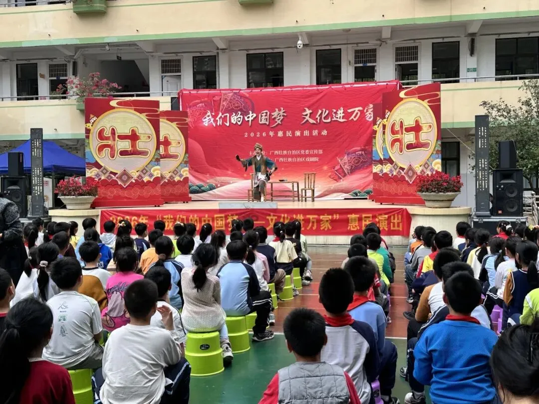 最后,壮戏《牡丹巧对药》精彩上演,演员们每一个眼神、每一句唱词,都带领学生们穿越时空,触摸传统戏曲的文化根脉。