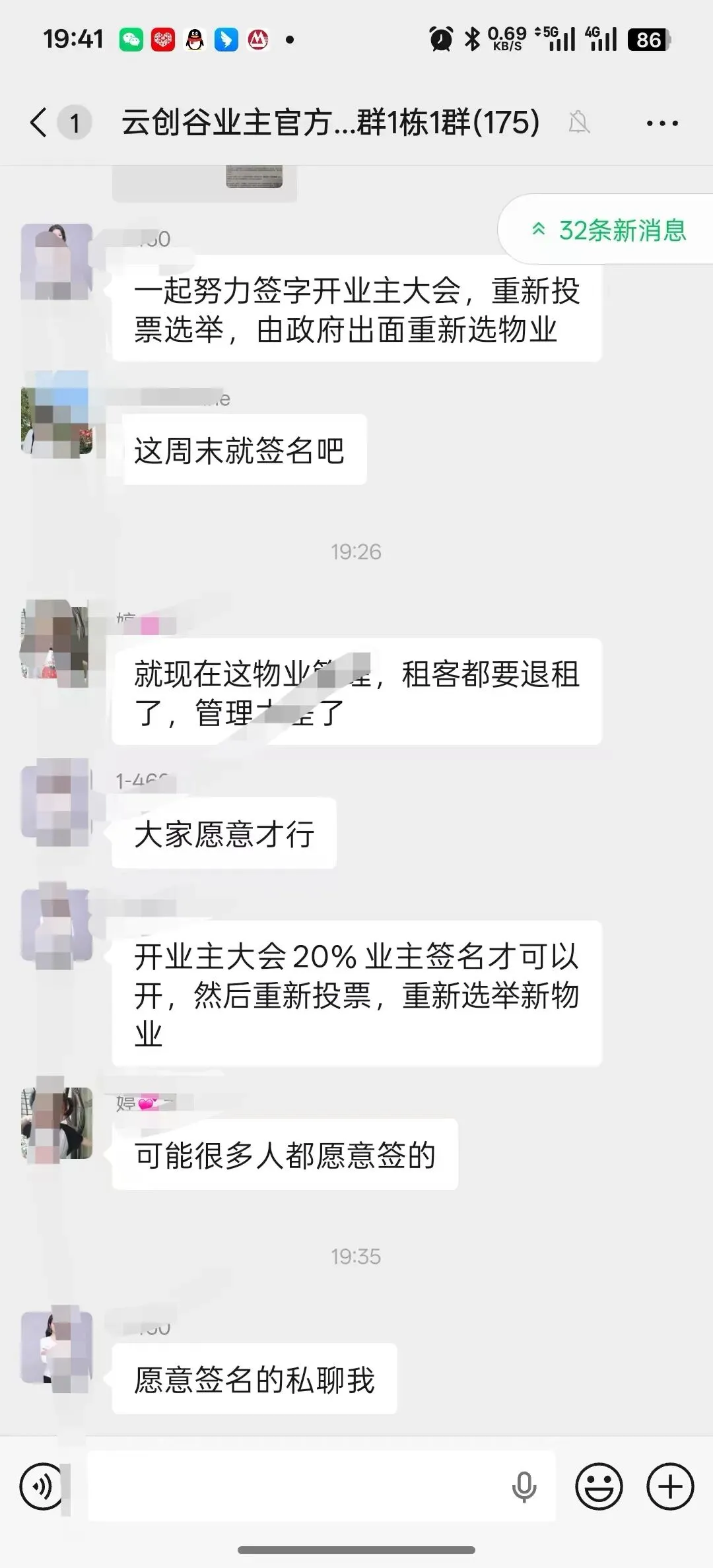 业主群里议论不断,有人说租客快退完了,有人说管理跟不上,还有人准备重新启动更换物业的流程。