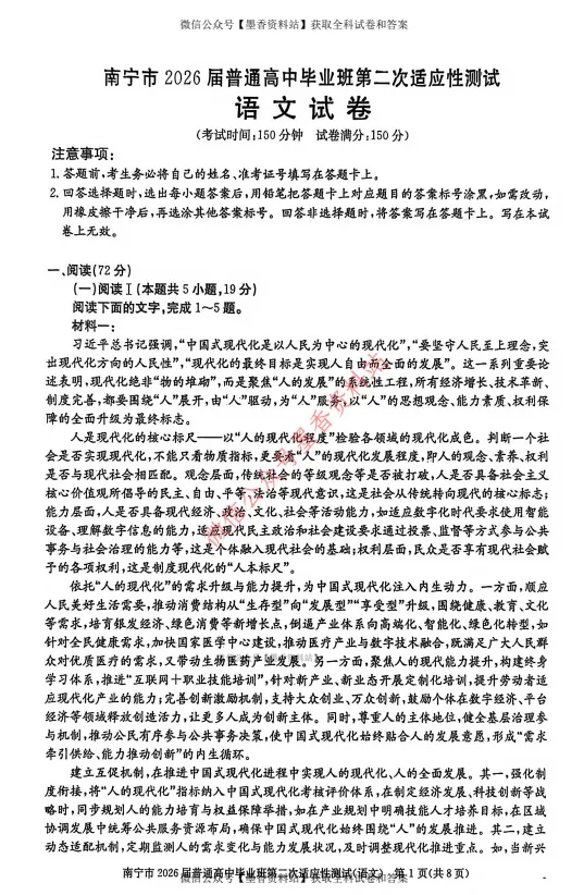 广西南宁市2026届普通高中毕业班第二次适应性测试南宁二模全科试卷含答案(由于部分科目未考,所以暂未更新,考后更新)