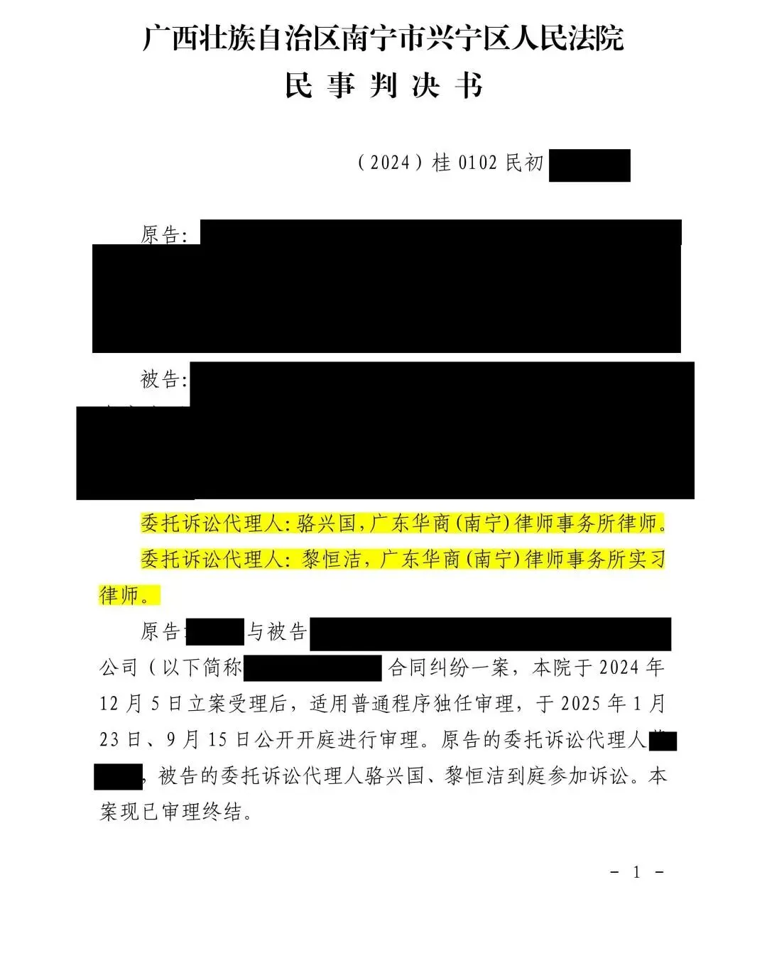 近日,华商(南宁)律师事务所创始合伙人、副主任骆兴国律师带领团队代理的一起合同纠纷案迎来圆满结局。面对对方维持协议的强硬主张,骆兴国律师率团队沉着应战,在一审据理抗辩、二审灵活调解中,巧妙运用调解智慧破解合同僵局,成功为委托人解除不利协议,直接减少支出近15万元,彰显了在民商事争议解决领域的专业实力。