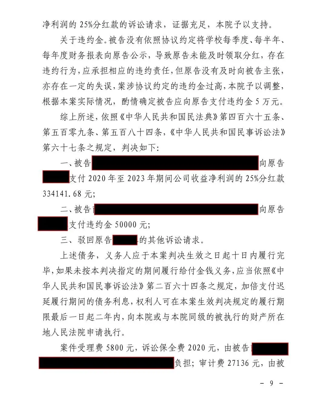委托人与章某因联合办学协议履行问题产生争议,对方不仅主张高额分红款及违约金,更在诉讼中坚持要求维持协议效力,意图长期锁定公司未来收益分配。一审中,骆兴国律师带领团队成员黎恒洁、杨秋勤实习律师,围绕股东资格、协议效力、公司实际经营状况、诉讼时效等关键问题展开缜密抗辩,据理力争,为当事人争取有利局面。