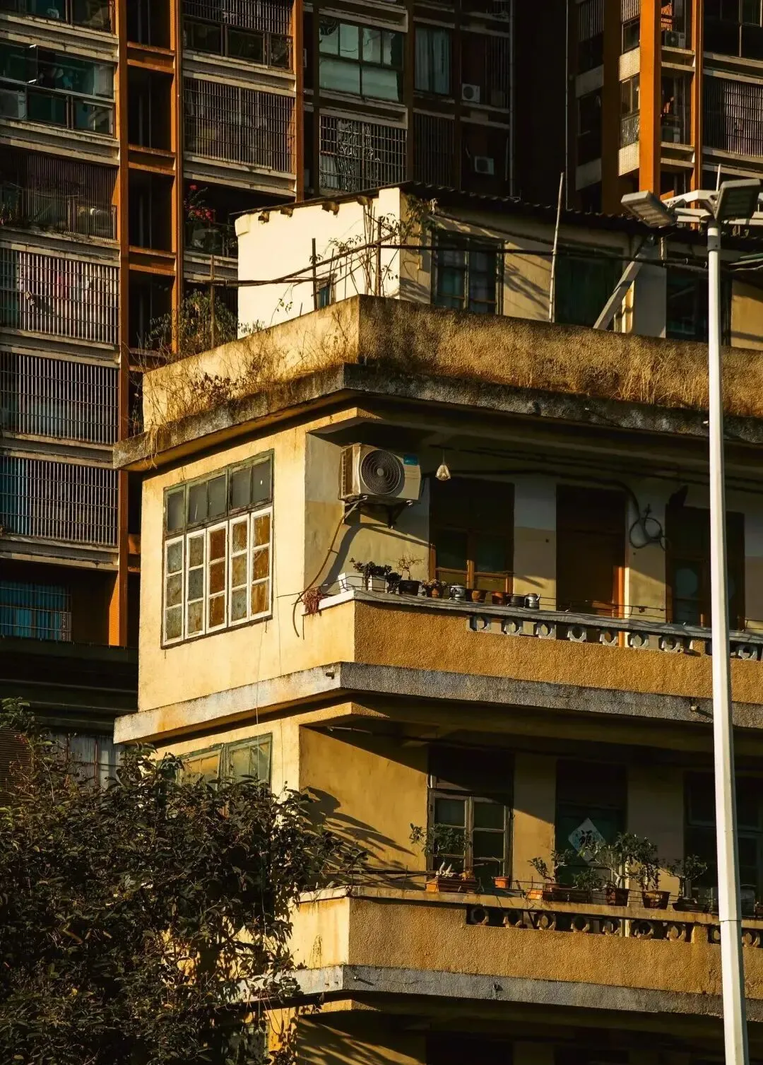 你从图里能先看到巷子的骨头,铁栏杆一排排贴着,窗格子像旧账本的格纹,墙面斑驳得刚刚好,连招牌都像被风吹着字也醒着。对了,我妈说,逛街那会儿最爱往里面钻,外面是路,里面才是日子。