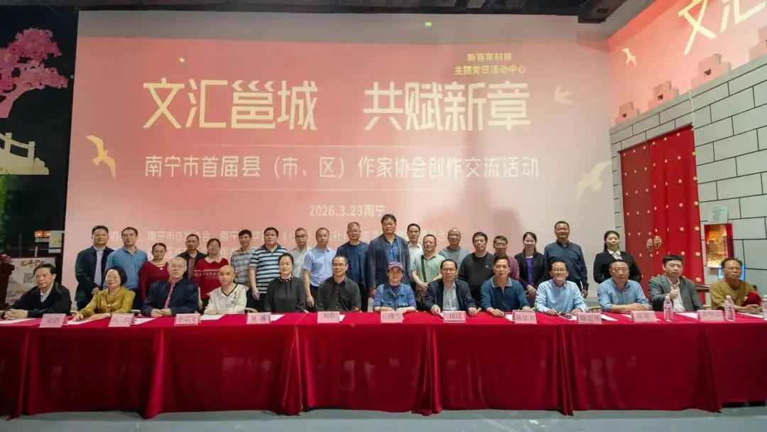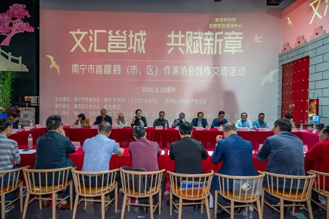 2026年3月23日,由南宁市文联、南宁市作协、南宁市文学院(《红豆》杂志社)、南宁市青秀区文联共同举办的“文汇邕城 共赋新章”首届全市县(市、区)作协交流活动在南宁祖龙ACMALL集团科技艺术中心举行。我市作协积极响应,选派方贵文、颜永良、马彪参加活动。交流活动由南宁市作家协会主席、广西作家协会原副主席丘晓兰主持,广西作家协会副主席、广西文学院副院长刘春到场,并作了指导性发言。