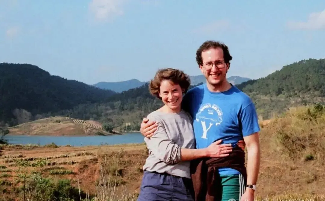 图中那个穿红衣服的姑娘和外国朋友并肩站着,她肩膀搭着白毛衣,手上还戴着玉镯,姿势大方,站在山坡一角,菜地水田错落有致,没啥修饰,就是实打实的邻家样,泥土气和阳光气一起扑面来,现在大家合影都要面瘫一排,那时拍你一张都是真表情。