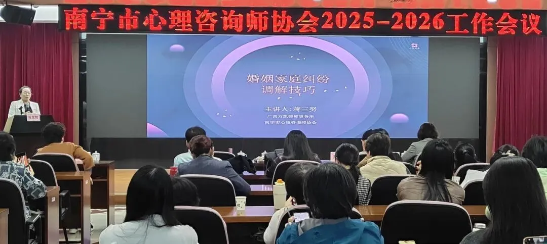 春风拂绿城,心海启新程。2026年3月22日,南宁市心理咨询师协会2025年年度总结会在邕江之畔举行。蒋三努律师应邀在2025年年度总结会上发言,与业界同仁共话心理服务新趋势,共谋人才发展新篇章。