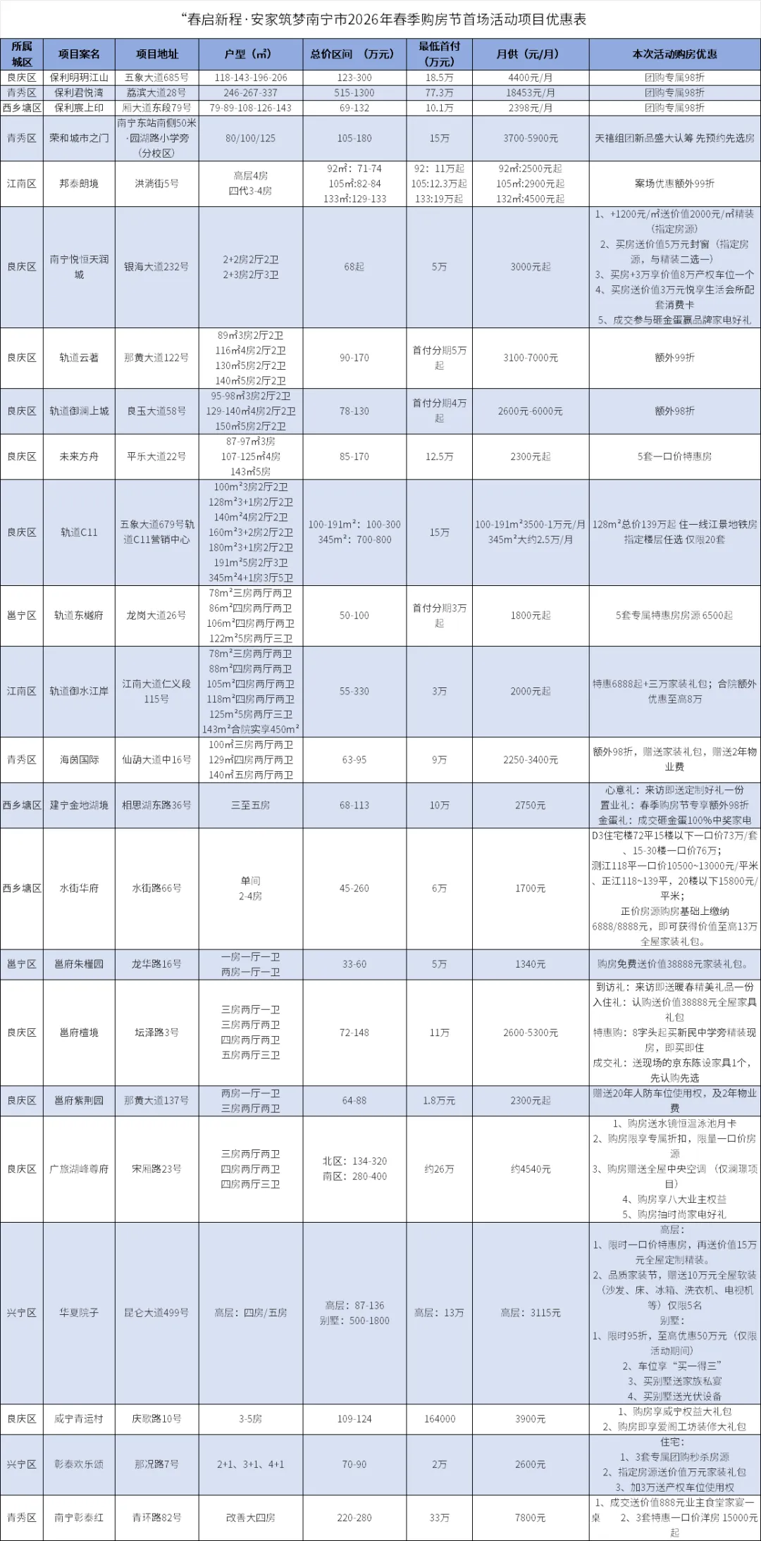 首场活动楼盘优惠请看下表↓↓