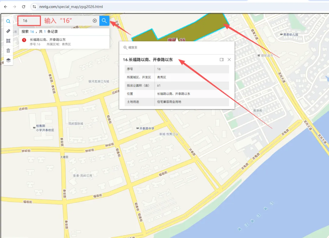 (二)关键字搜索地块位置,如 “长福路以南、开泰路以东”、“柳象路以东、荔滨大道以北”等。
