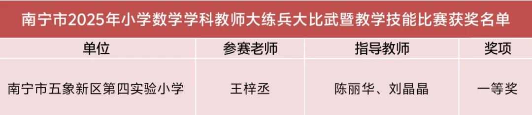 热烈祝贺我校在南宁市2025年小学数学学科教师大练兵大比武暨教学技能比赛中喜获佳绩!