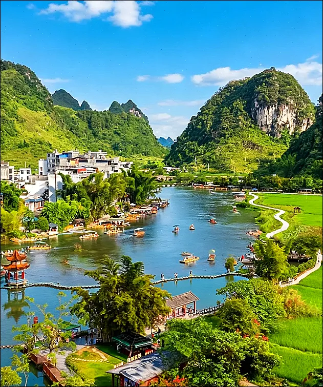 崇左有一种很少见的“慢力量”。它不靠高声量营销,也不靠过度包装的景观取胜。喀斯特峰林一层层铺开,左江花山岩画静静贴在崖壁上,骆越文化的源头感不是说出来的,是你站在那儿就能感到时间压过来的分量。边关城市常常容易被想象得粗粝,可崇左的粗粝里又带着安稳,摩托车从街口划过去,早市叫卖声一阵接一阵,居然不吵,反而让人觉得:对,这就是生活落地的声音。
