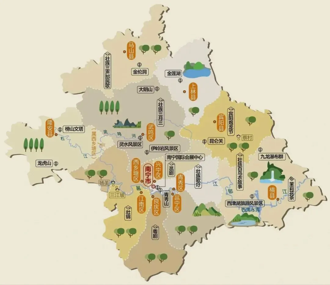 南宁市行政区划代码:450100(后附下辖区县行政区划信息)