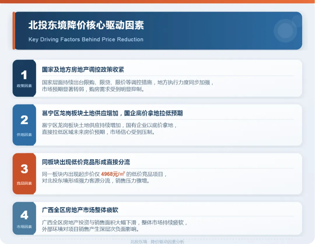 国家对房地产行业的持续调控,是压在开发商头上的第一座大山。广西北部湾投资集团明确提到,各地出台的一系列限购政策进一步加大了房地产调控力度,直接影响销量预期。当市场整体信心不足,降价就成了最直接的应对策略。