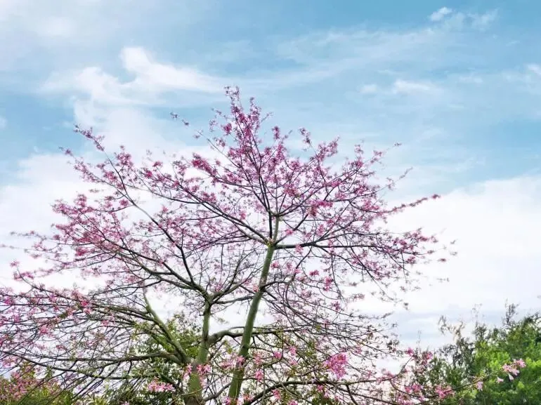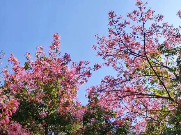 这美丽异木棉是真不一般,不仅颜值高,生长节奏还挺特别——秋冬季满树都是粉嘟嘟的花,到了春天又飘起漫天“棉花雪”,处处给人惊喜!