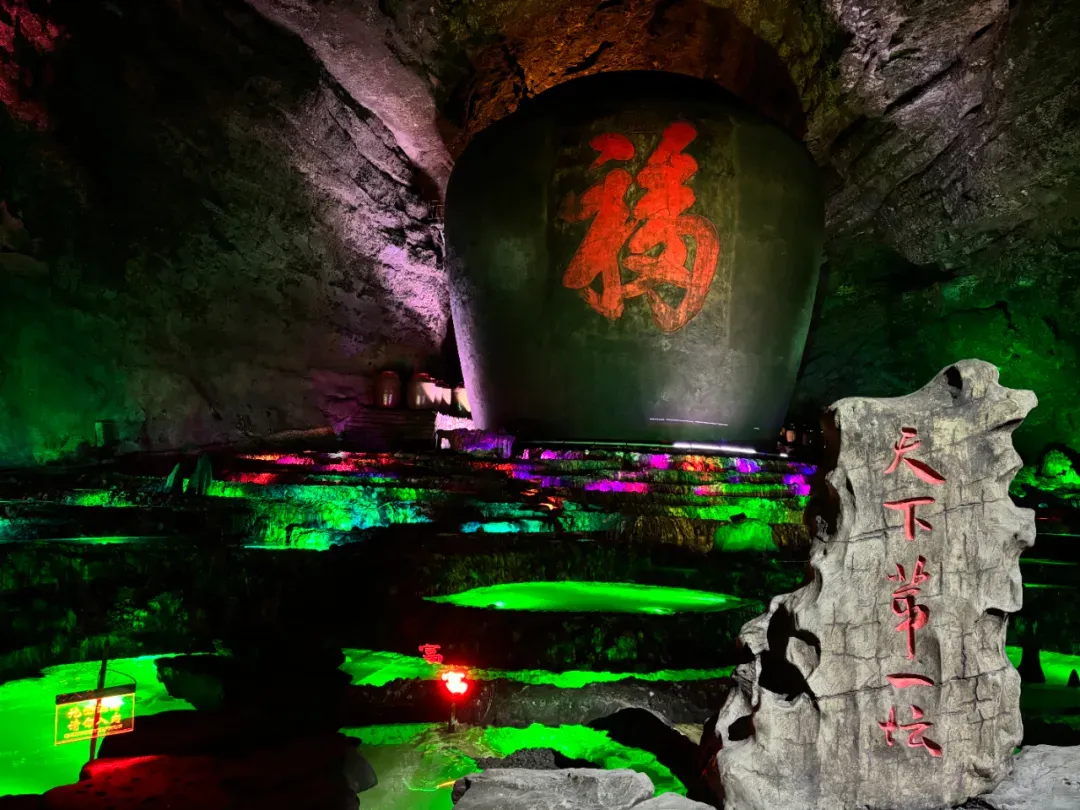 乘坐28米观光电梯缓缓上升,无需再攀爬陡峭步道,便可从容俯瞰洞口全景,远眺古树与山峦相映成趣,让登山之累化作空中览胜的惬意。电梯抵达平台,穿过仿古石门,便正式开启地下探险之旅。进入溶洞,凉意瞬间包裹全身,与外界的喧嚣形成鲜明对比。