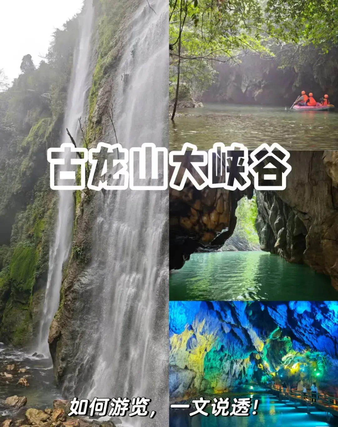 15:30-19:30:古龙山大峡谷(徒步/漂流,看瀑布、暗河溶洞,傍晚光线佳)
