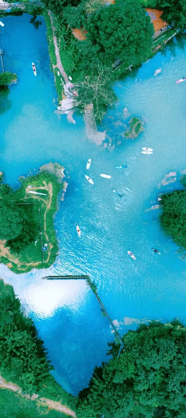 九顿天窗清澈湛蓝的水,可以租上一个浆板,近距离感受秀丽的水上风光,还有那在水中摇曳着曼妙身姿的“水下森林”。