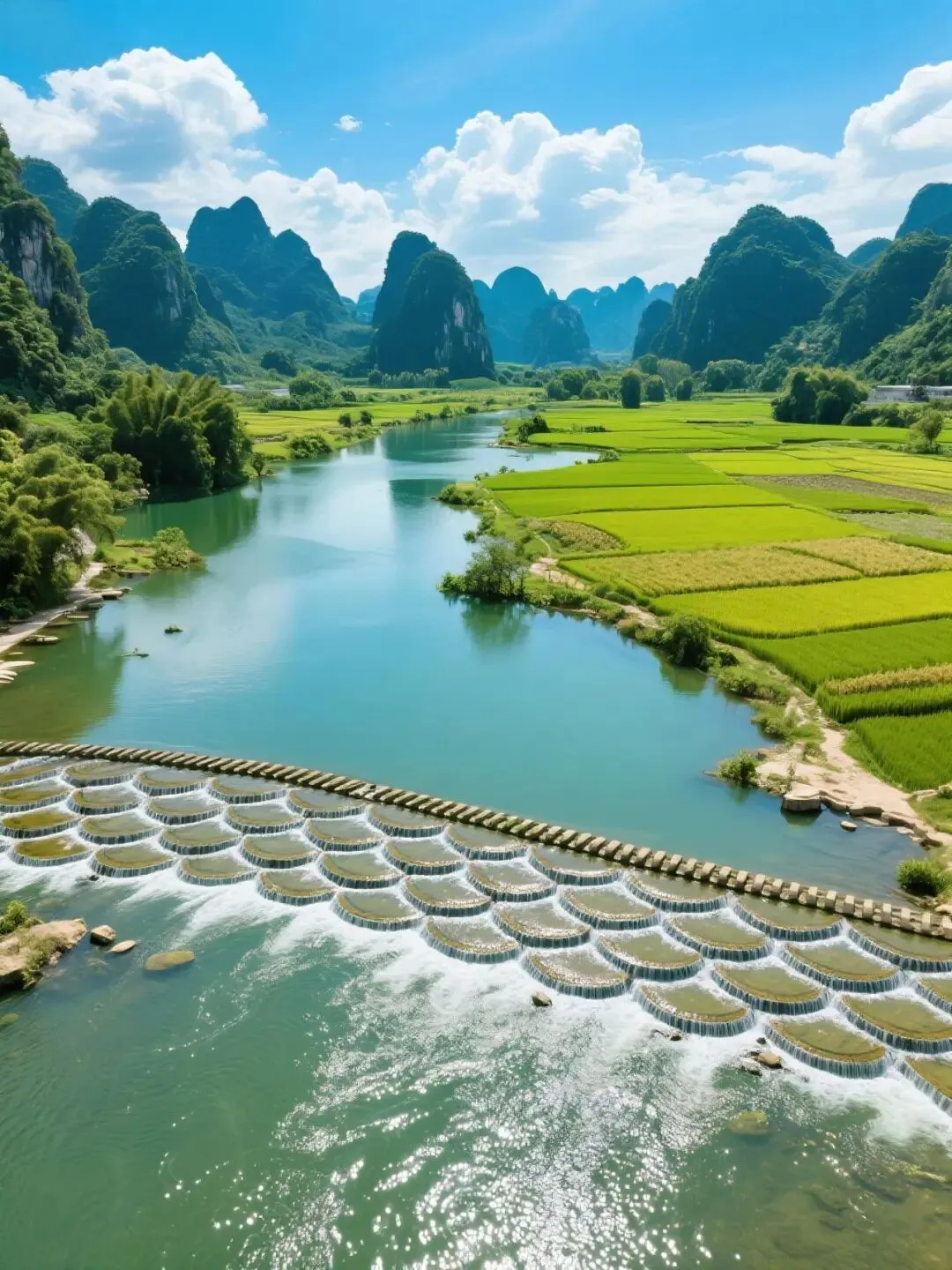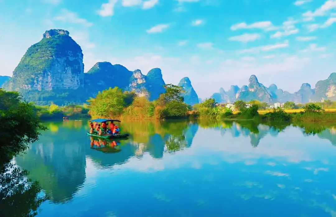 15:00【明仕田园】(国家4A级景点,包含竹筏票)这里山青水秀,翠竹绕岸,山峰奇特,农舍点缀,极富南国田园气息和浓郁的壮乡风情,获得了“隐者之居”“邮票上的山水田园”等美誉。17:30前往靖西酒店入住