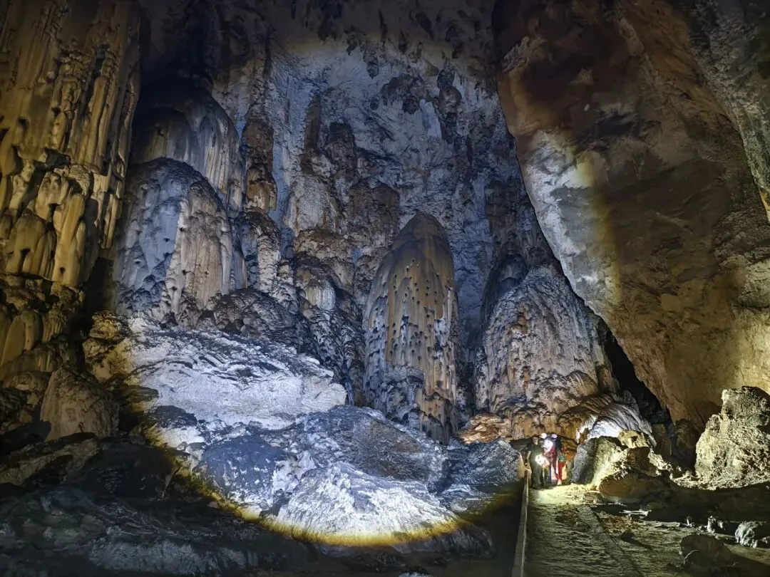 洞中最大的特色是有国内十分罕见的地盾,用手触摸,可发出悦耳的声音,仿佛进入美妙的音乐殿堂。各种流石坝,美不胜收。溶洞里到处都石英砂晶石,用头灯一照,星光点点,如满天繁星。