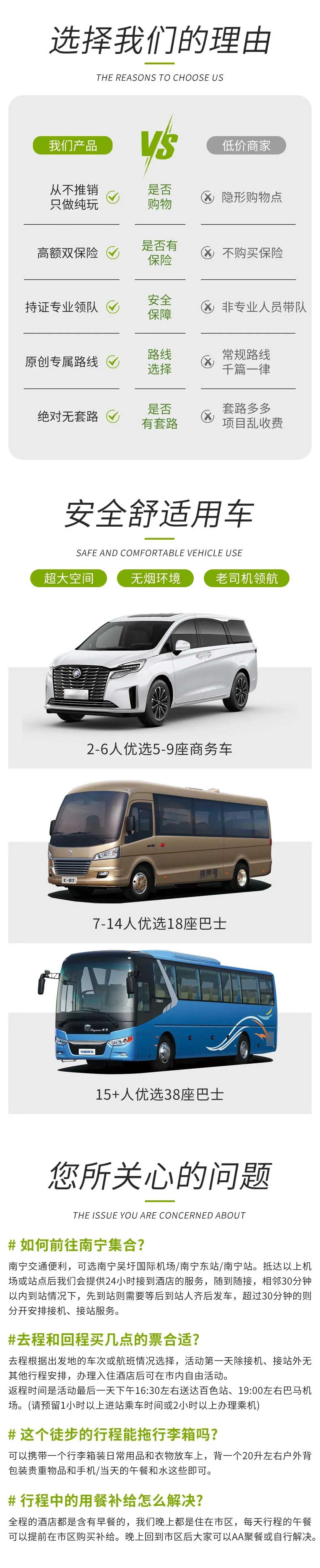 ① 广西南宁是交通枢纽中心,各地直达航班、高铁动车、火车交通便利,可根据个人需求结合出发地的车次、航班购买。