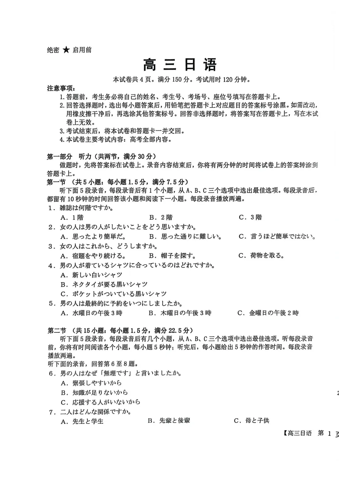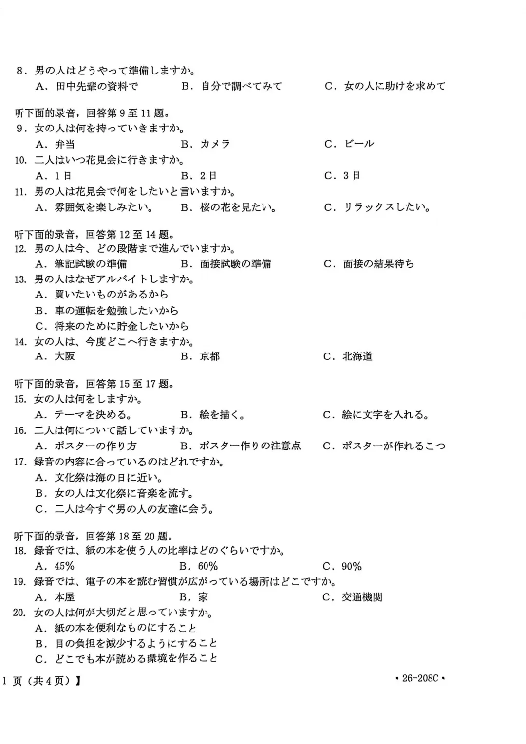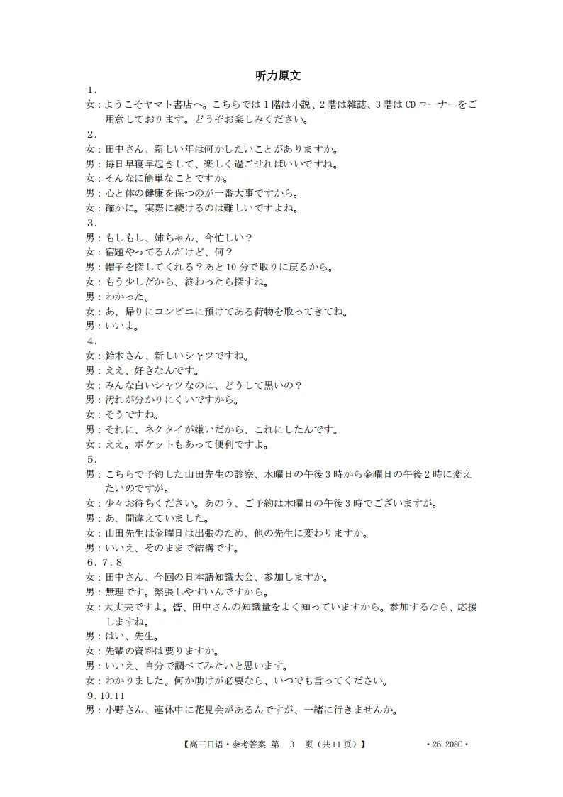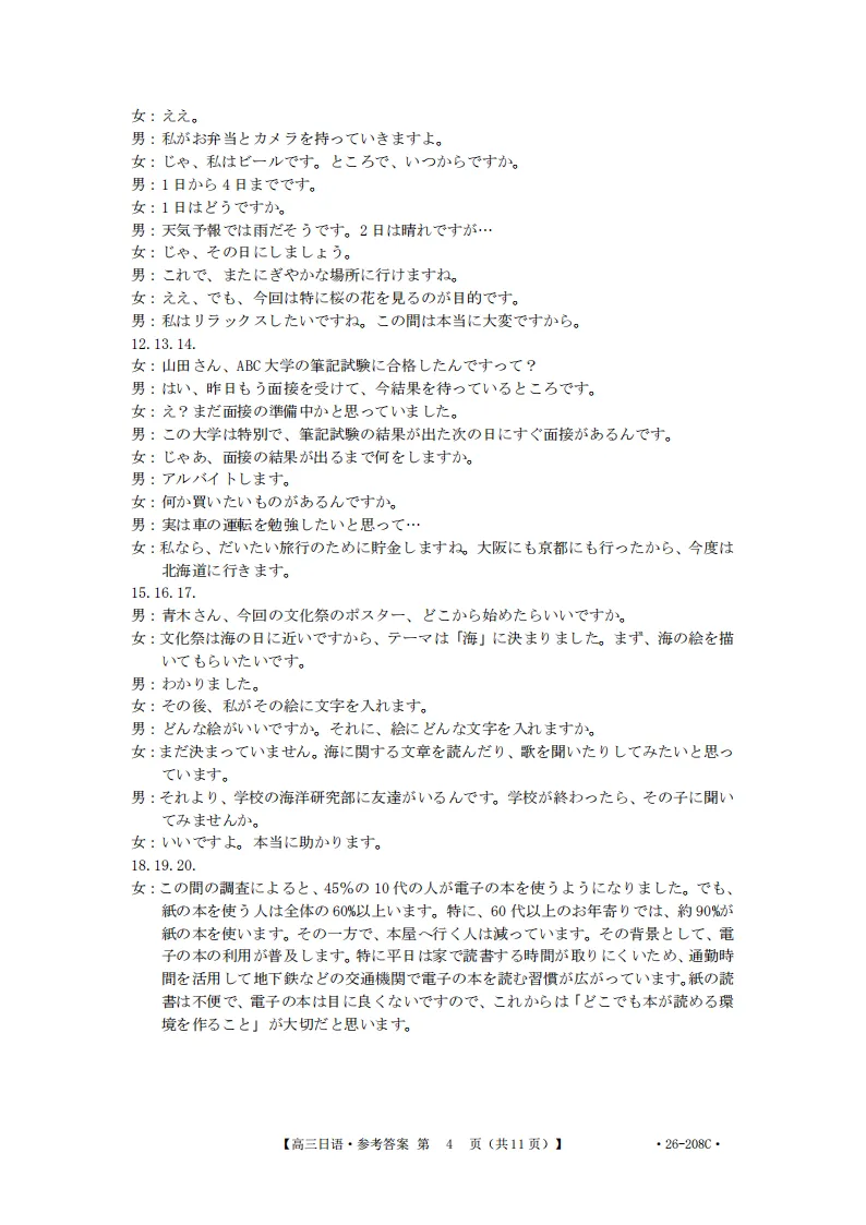 今日分享:广西南宁市2026届高中毕业班第二次适应性测试日语试题+听力+答案-河北春辉高考日语培训下拉至文末点击“阅读原文”