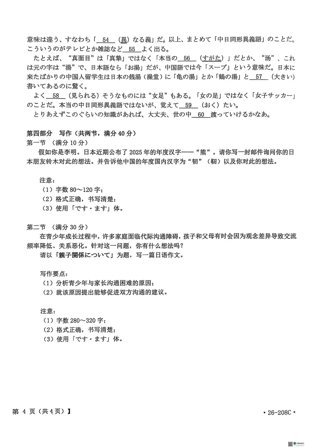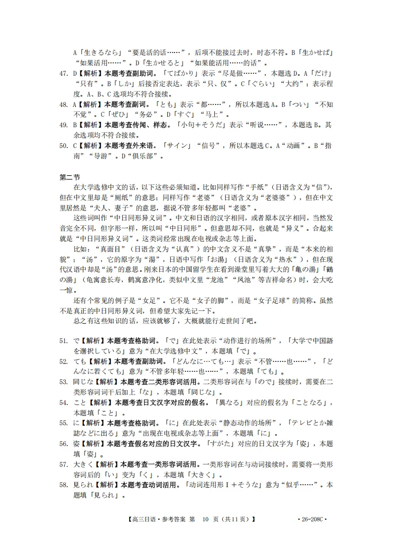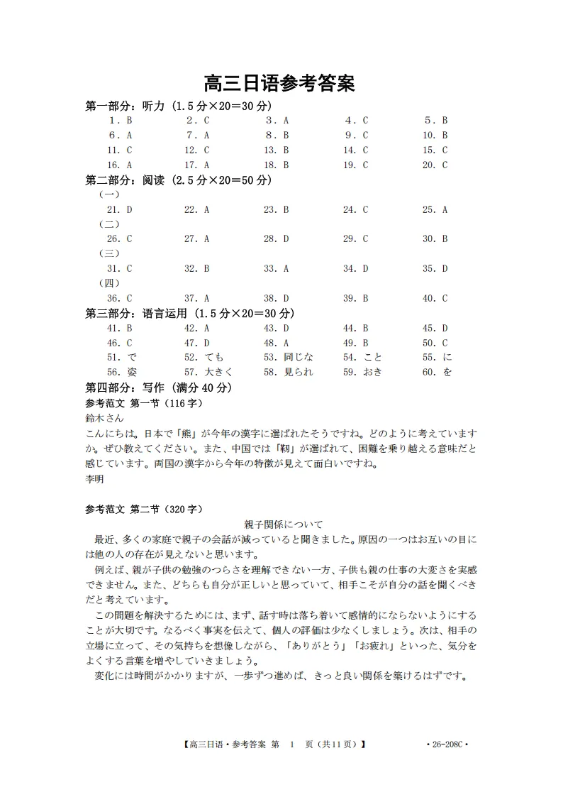 解析!金太阳26-208C| 广西南宁市二模2026届高三日语试题(作文:邮件+親子関係について)