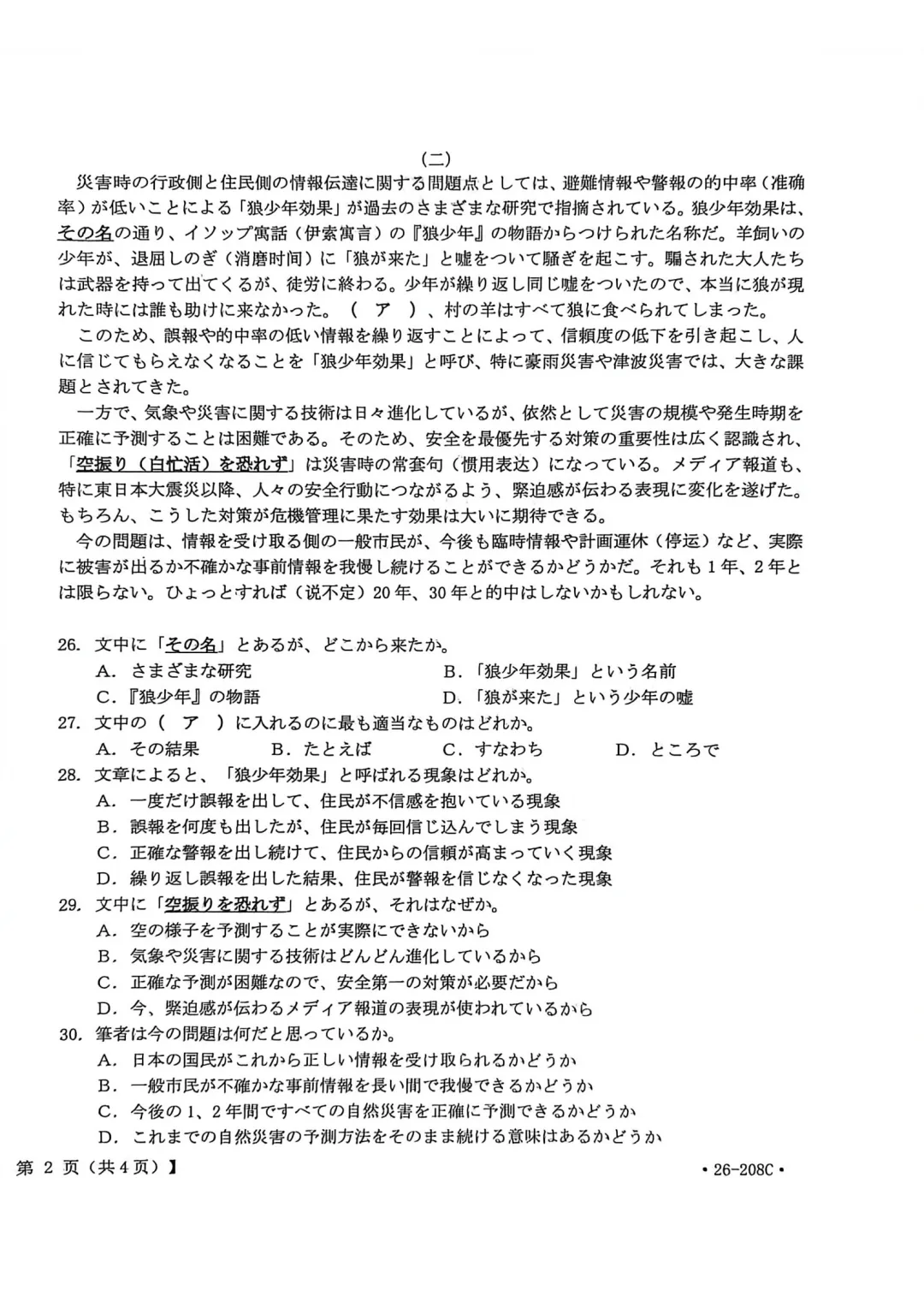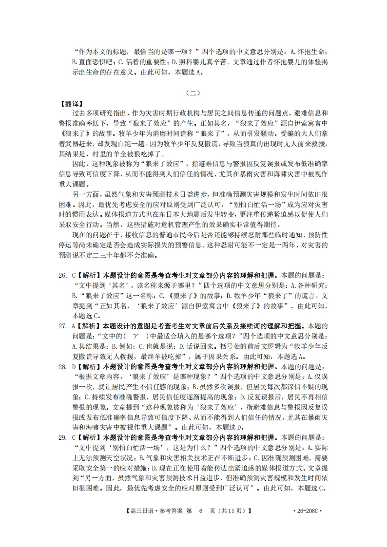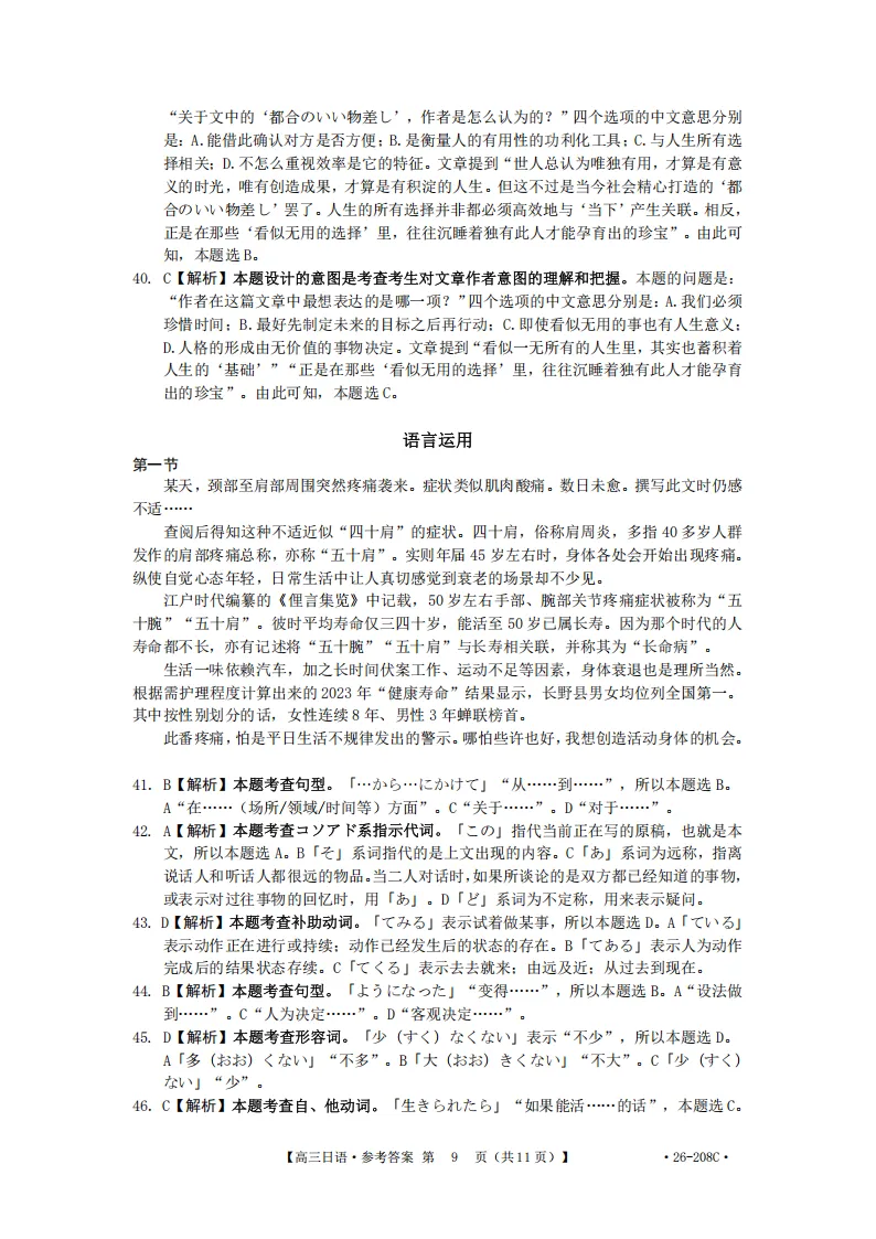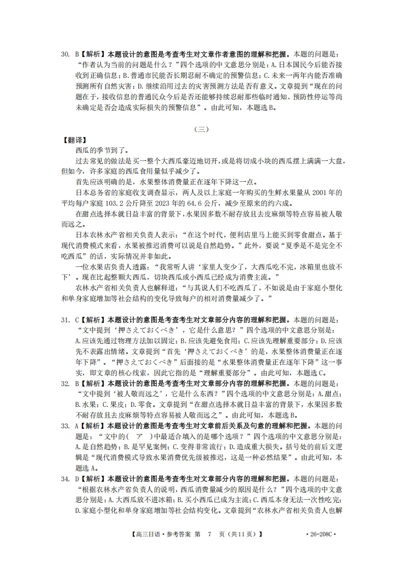 解析!金太阳26-208C| 广西南宁市二模2026届高三日语试题(作文:邮件+親子関係について)
