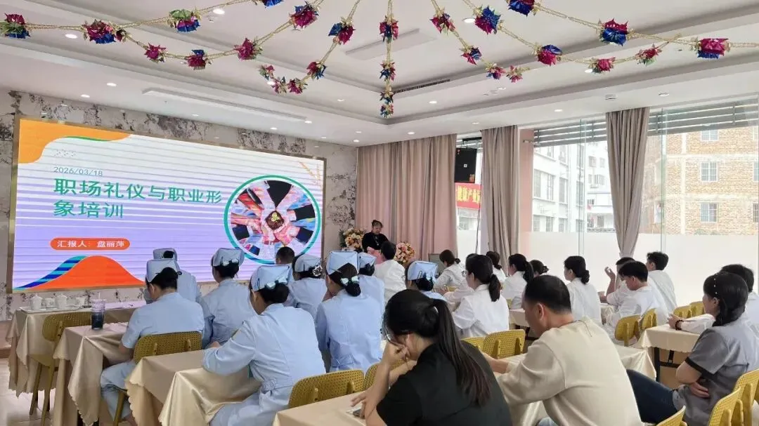 礼仪是职场的“第一张名片”,更是中医行业传递温度与专业的重要载体。为进一步提升员工职业素养、规范服务形象,2026年3月24日下午4点,南宁新派中医门诊部医疗服务部在二楼大厅顺利开展职场礼仪及宴请礼仪专项培训,医疗服务部全体在岗员工全员参与、认真学习,共同解锁职场礼仪新技能。